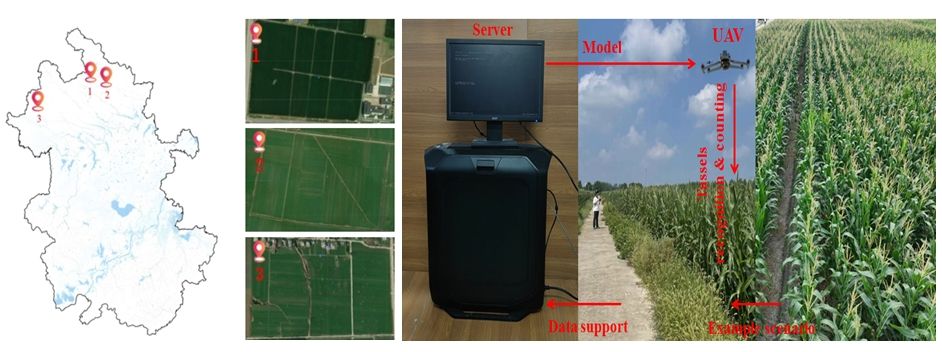 近日,新捕京3522com光电感知团队在智慧农业知名期刊《Smart Agriculture Technology》(中国科学院二区,IF=5.7)发表题为“Detecting Tassels in UAV imagery with Tassel-YOLOv12n Model: A Case Study of Maize Varieties in the Huaibei Plain, China”的研究成果。该项工作中,研究团队依托濉溪县、太和县和埇桥区的长期定位试验田开展无人机遥感监测,收集了2024年淮北平原玉米抽雄期和散粉吐丝期的海量可见光影像。学生团队标注了近十万棵玉米雄蕊,构建了高质量数据集Maize_hfnu。通过研发的Tassel-YOLOv12n算法实现了大田复杂环境下玉米雄蕊的精准识别和计数。本技术将用于无人机扰动干预授粉的时机选择和路径规划,成果将为淮北平原砂姜黑土区粮食单产提升提供技术支持。