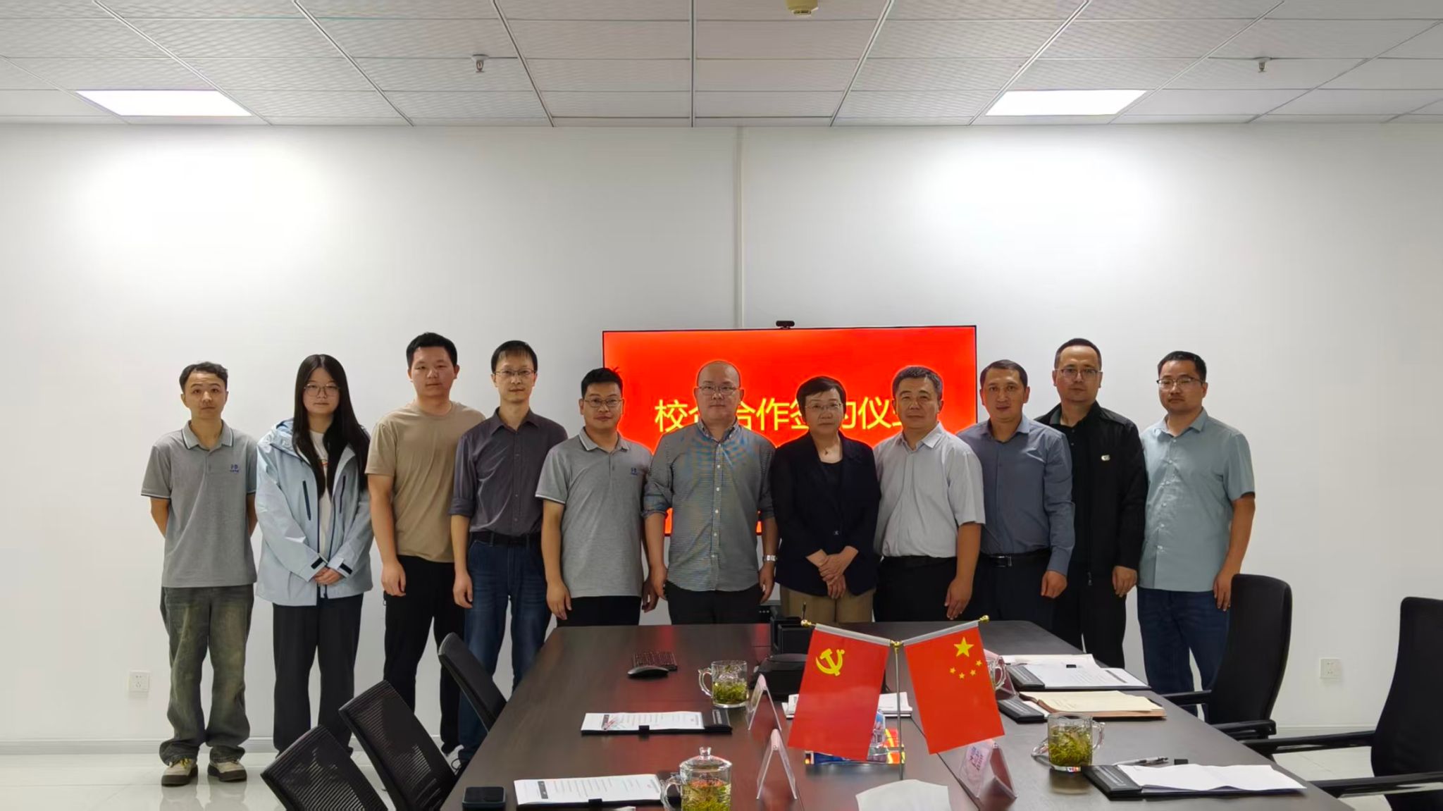 在参观公司生产和研发基地后,双方进行了座谈。束庆邦对梁立昌一行表示热烈欢迎,他详细介绍了公司的发展历程、核心业务、技术优势、战略布局以及人才需求。他高度认可学校的育人成果,期待与学校建立长期稳定的合作关系,共同探索产学研用协同创新路径,为企业发展注入新动能。